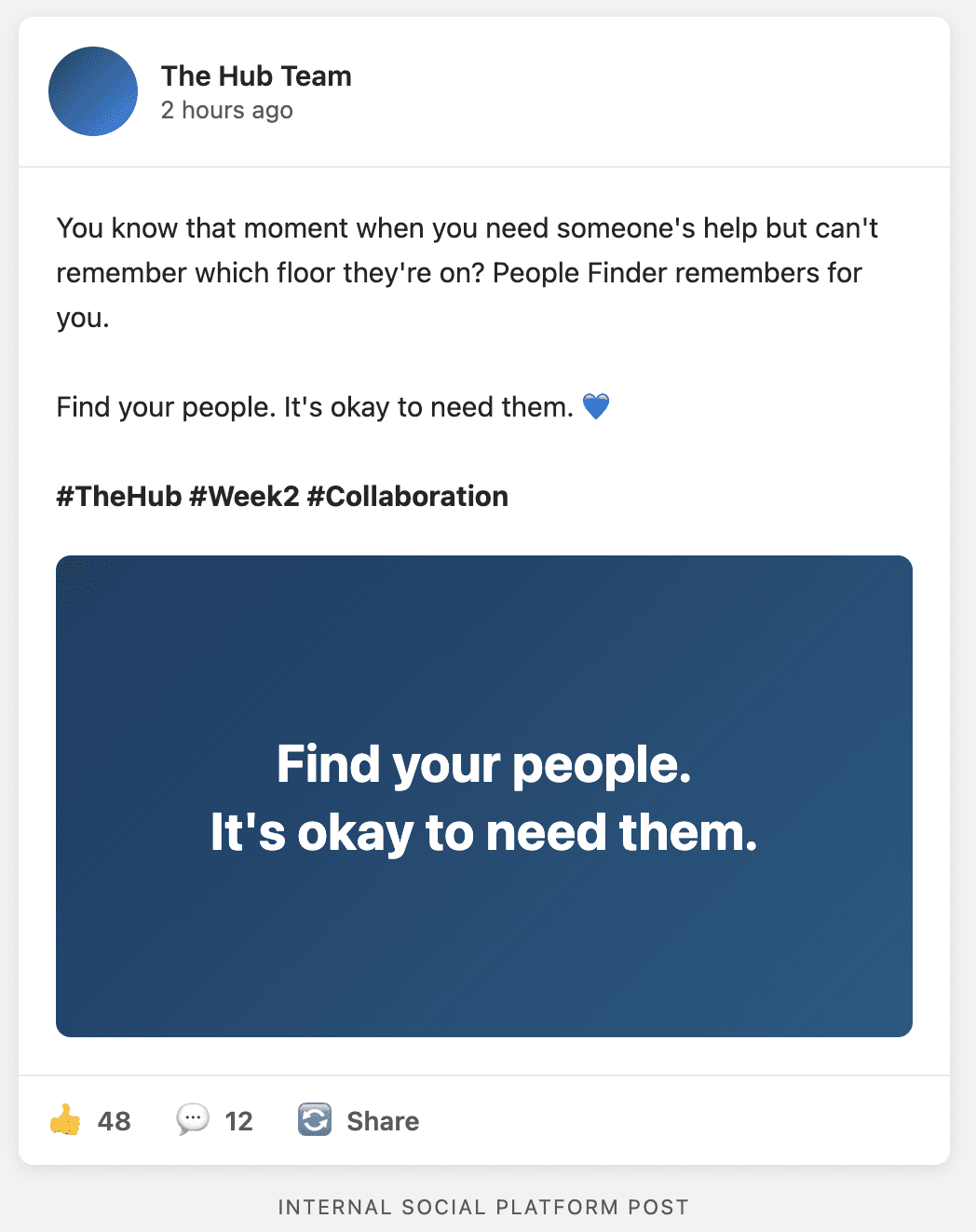 - Multi-channel distribution through internal social platforms and Microsoft Teams
