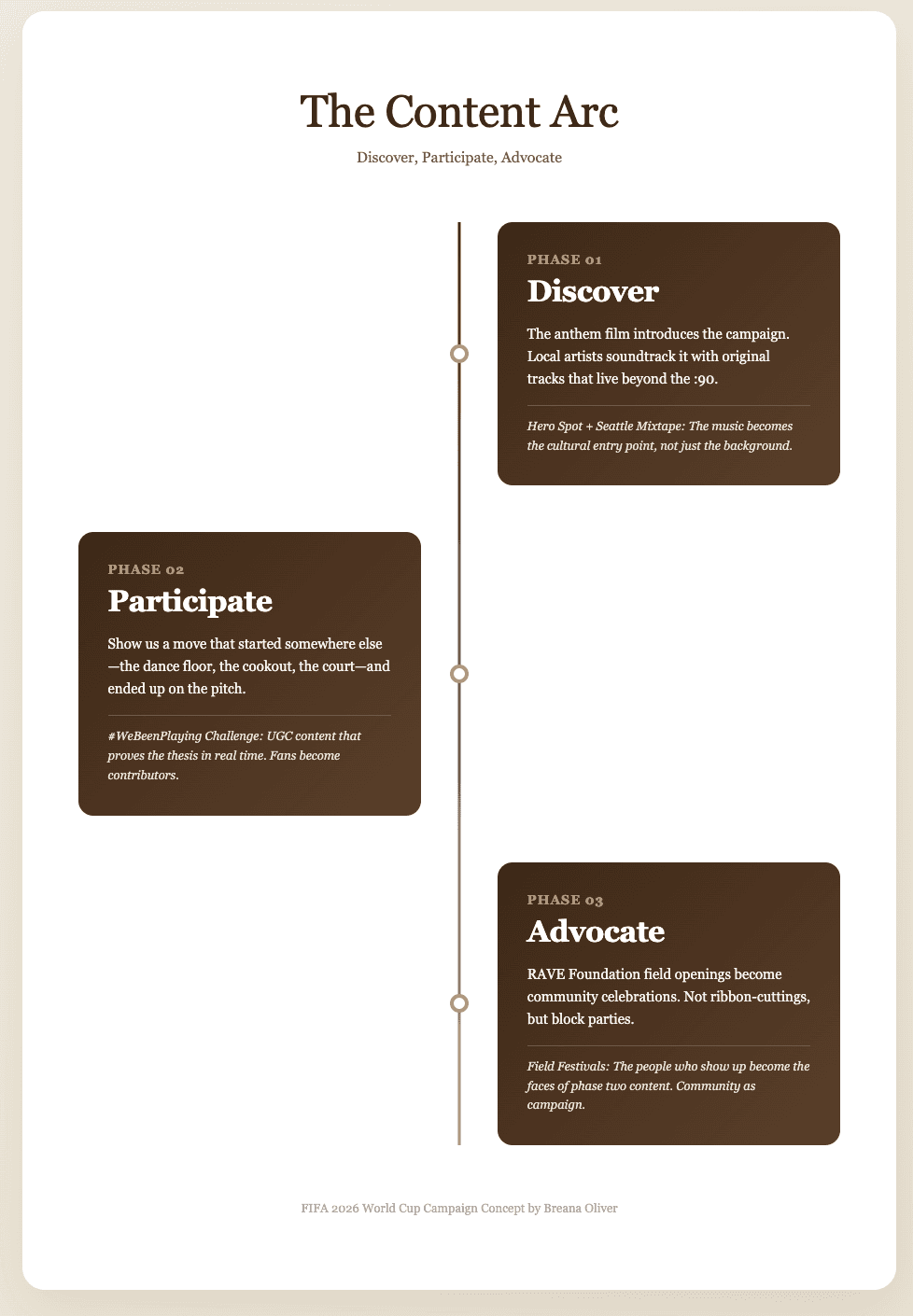 The playbook adapts to each city's cultural truth. Find the local hero. Partner with the people already building. Let local artists translate the campaign into authentic expression. The tagline stays. Everything else adapts.