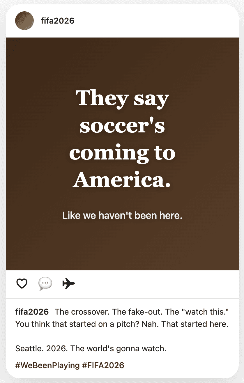 This campaign doesn't introduce soccer to Black communities—it acknowledges the game they've been playing all along. It positions the 2026 World Cup not as an arrival moment, but as a recognition moment.
