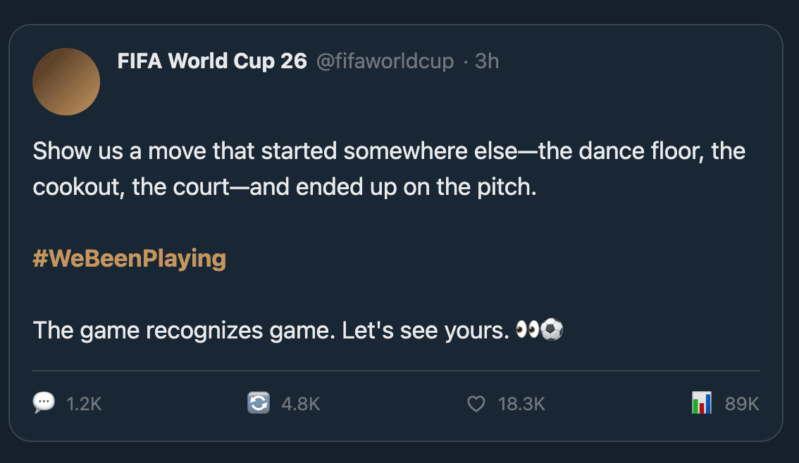 Reframes the World Cup from spectacle to recognition—honoring communities instead of introducing them to something "new"